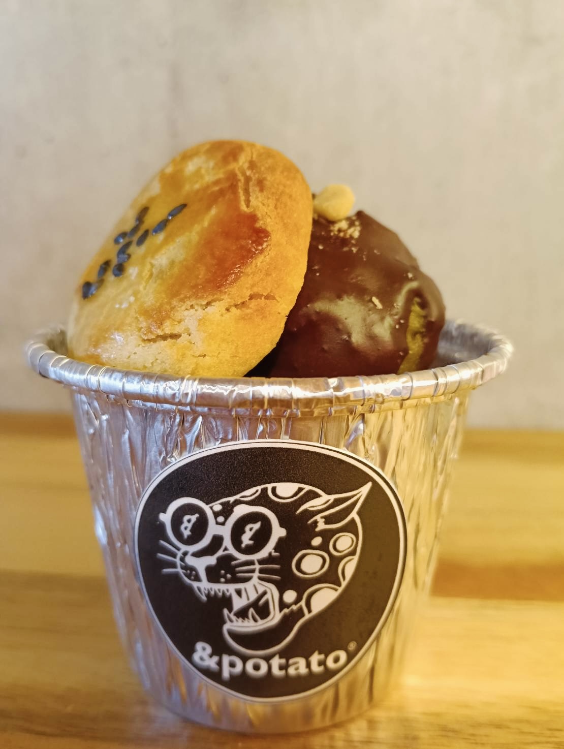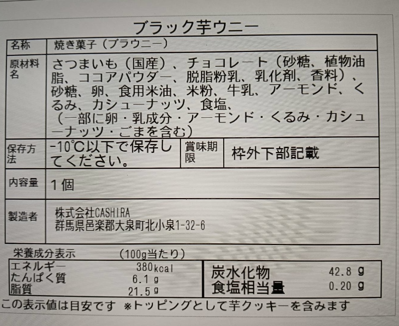 芋、濃すぎ、新ブラウニー。濃厚ショコラが沈む。蜜芋が主役のブラック芋ウニー。蜜芋ぎゅッキーを添えて。
